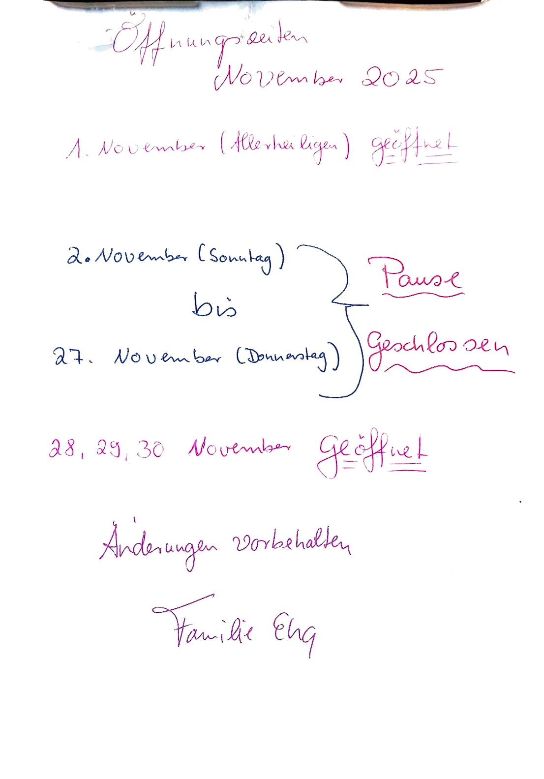 Wir haben unsere Öffnungszeiten im November angepasst.